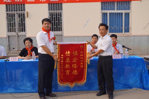 9月20日下午,秋高氣爽、陽(yáng)光明媚,膠南市黃山經(jīng)濟(jì)區(qū)希望小學(xué)落成儀式在學(xué)校大操場(chǎng)隆重舉行。激昂的國(guó)歌聲后,少先隊(duì)員們?yōu)槌鱿I(lǐng)導(dǎo)敬獻(xiàn)紅領(lǐng)巾,以此來(lái)表達(dá)孩子們的崇高敬意。一位學(xué)生代表用稚嫩的童音道出了對(duì)青島海川建設(shè)集團(tuán)及支持希望工程事業(yè)建設(shè)的各類愛(ài)心團(tuán)體的誠(chéng)摯感謝,和臺(tái)下上千名含苞待放,映襯在陽(yáng)光里的一張張幸福笑臉一樣,他們都是祖國(guó)的未來(lái)和希望,也讓在場(chǎng)的每一位成年人對(duì)“捐資助教、功德無(wú)量”這句話有了更深刻的理解和感悟。黃山經(jīng)濟(jì)區(qū)希望小學(xué)校長(zhǎng)懷著激動(dòng)地心情向海川集團(tuán)贈(zèng)送錦旗一面,愛(ài)心助學(xué)的善舉也贏得了在場(chǎng)師生一次又一次熱烈的掌聲。集團(tuán)黃中坡副總裁代表發(fā)言,他特別指出,今年恰逢集團(tuán)成立60周年之際,本著“節(jié)儉辦大慶”和“注重社會(huì)公益性”的宗旨,集團(tuán)將主要活動(dòng)資金拿出來(lái)援建黃山經(jīng)濟(jì)區(qū)中心小學(xué),另外發(fā)動(dòng)企業(yè)職工向老一輩建筑人曾經(jīng)援建過(guò)的四川藏族甘孜地區(qū)捐獻(xiàn)衣物。通過(guò)一系列與社會(huì)接軌的主題活動(dòng),力爭(zhēng)將本次大慶辦得更有意義。最后他衷心希望膠南市黃山經(jīng)濟(jì)區(qū)中心小學(xué)的全體同學(xué)從小樹立遠(yuǎn)大目標(biāo),刻苦學(xué)習(xí),努力向上,爭(zhēng)做國(guó)家棟梁之才,立志回饋社會(huì),報(bào)效祖國(guó)。青島團(tuán)市委副書記張海軍和膠南市委副書記佟海燕也出席儀式并與海川集團(tuán)黃中坡副總裁一起為希望小學(xué)揭牌,同時(shí)就海川集團(tuán)對(duì)教育公益事業(yè)的傾情參與和大力支持給予了充分肯定和高度評(píng)價(jià)。