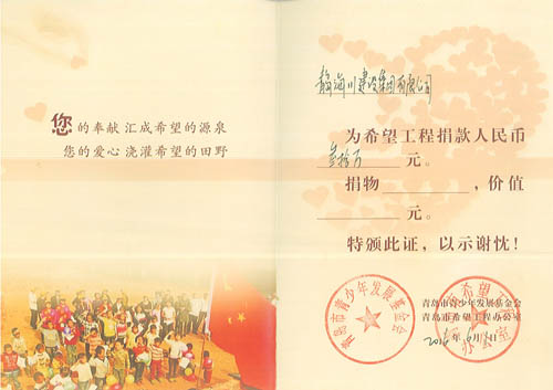 海川集團(tuán)多年來(lái)一直把履行社會(huì)義務(wù),回饋社會(huì),報(bào)效祖國(guó)作為企業(yè)的重要職責(zé),在企業(yè)發(fā)展的同時(shí),不忘社會(huì)公益事業(yè),十幾年來(lái)已向社會(huì)公益事業(yè)捐款累計(jì)超過(guò)460萬(wàn)元:先后向青島市教師素質(zhì)專項(xiàng)基金捐款30萬(wàn)元,捐建貴州江口縣雙江鎮(zhèn)希望中學(xué)30萬(wàn)元,捐建膠南市黃山鎮(zhèn)希望小學(xué)30萬(wàn)元。并通過(guò)基金會(huì)捐助惜福鎮(zhèn)后金小學(xué)多臺(tái)電腦用于教學(xué),2013年4月,又向惜福鎮(zhèn)“為了惜福孩子的明天”大型公益活動(dòng)捐款30萬(wàn)元。另外,在汶川地震期間,組織廣大職工開展賑災(zāi)捐助活動(dòng),奉獻(xiàn)愛(ài)心,先后向市紅十字會(huì)捐款129690元,榮獲“紅十字博愛(ài)銀獎(jiǎng)”。近年又為惜福鎮(zhèn)教育基金捐款300萬(wàn)元。2014年至今,連續(xù)三次組織員工積極開展無(wú)償獻(xiàn)血公益活動(dòng),緩解了島城醫(yī)療機(jī)構(gòu)臨床用血的緊張局面,充分體現(xiàn)了海川集團(tuán)及廣大員工的社會(huì)責(zé)任感和無(wú)私奉獻(xiàn)精神。