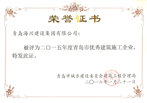 海川集團(tuán)被評(píng)為2015年度青島市優(yōu)秀建筑施工企業(yè)