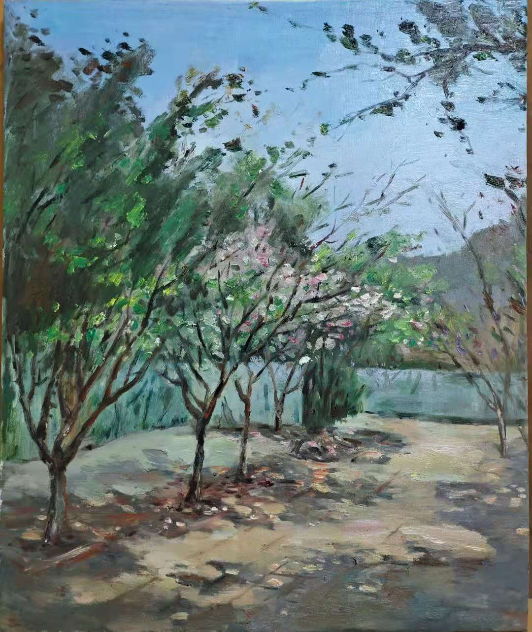 從今年春天開始,青島市女畫家協(xié)會眾多畫家分期分批多次來海川生態(tài)園寫生作畫,描繪不同季節(jié)的不同景色。最近已是深秋初冬,她們又被霜葉秋色吸引,前來描畫生態(tài)園獨(dú)特的景色。